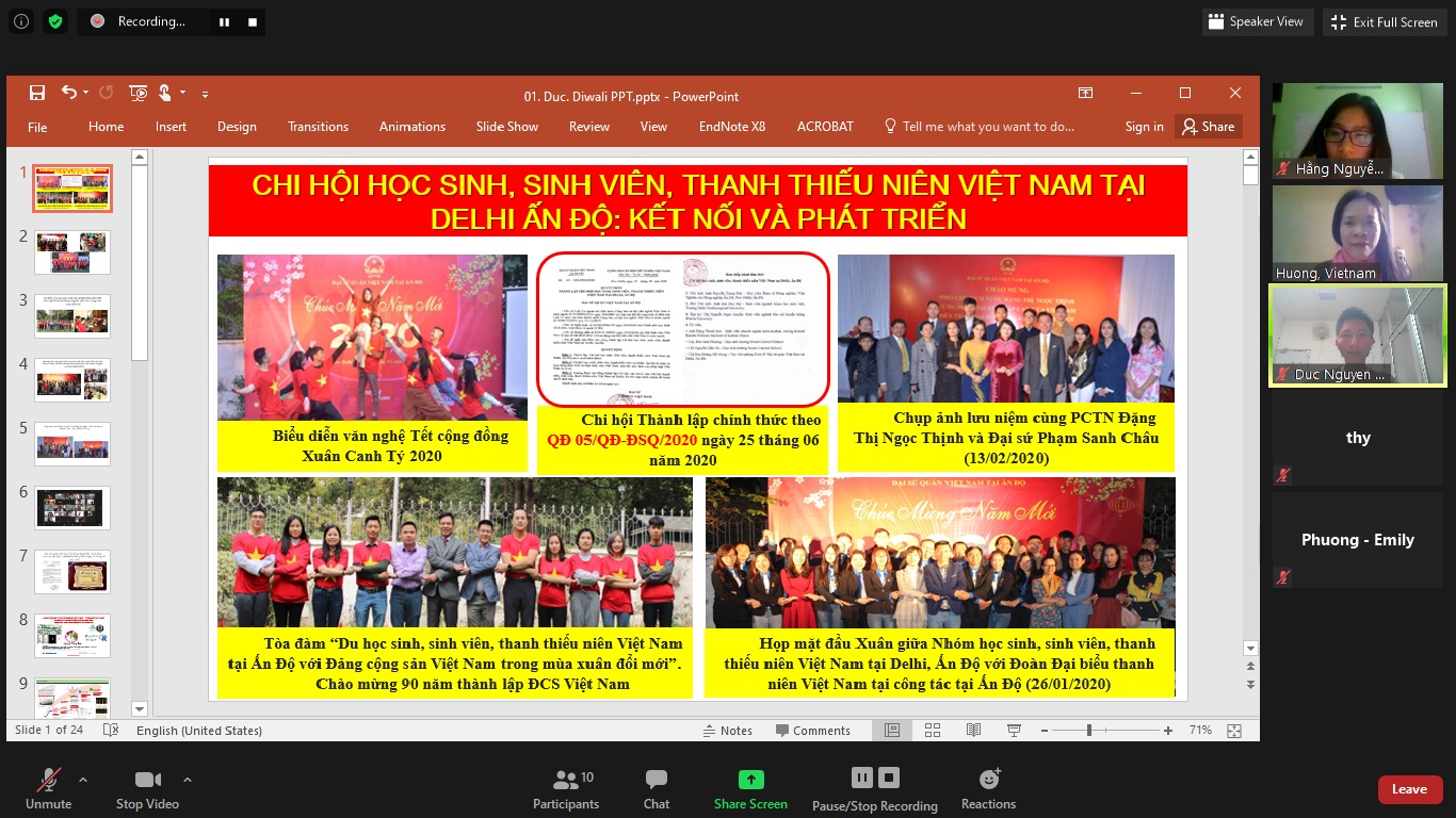 Webinar được tổ chức để nhìn lại một năm đầy khó khăn và thử thách do COVID-19 của du học sinh việt Nam tại Ấn Độ, đồng thời đón tết Diwali truyền thống của Ấn Độ.