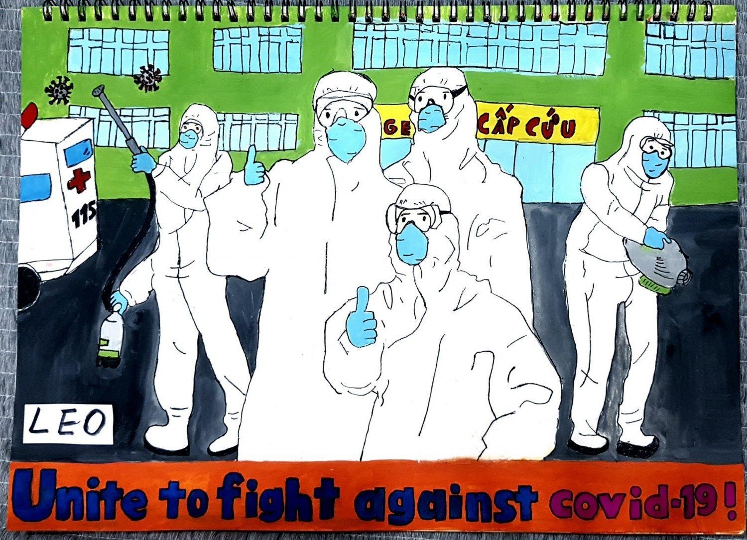 Bức tranh của em Lee Yun Woo, người Hàn Quốc gửi đến tham gia cuộc thi thể hiện niềm tin tưởng vào các y bác sĩ sẽ cùng đồng lòng chiến thắng đại dịch Covid 19