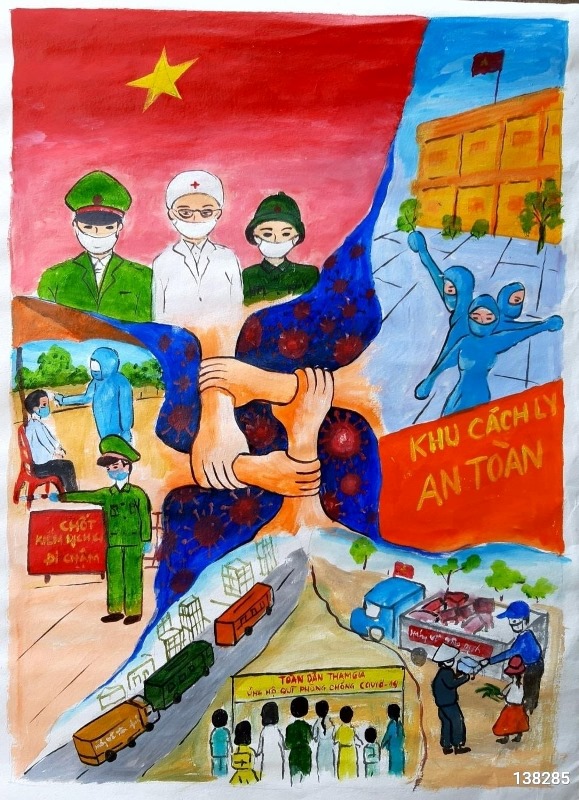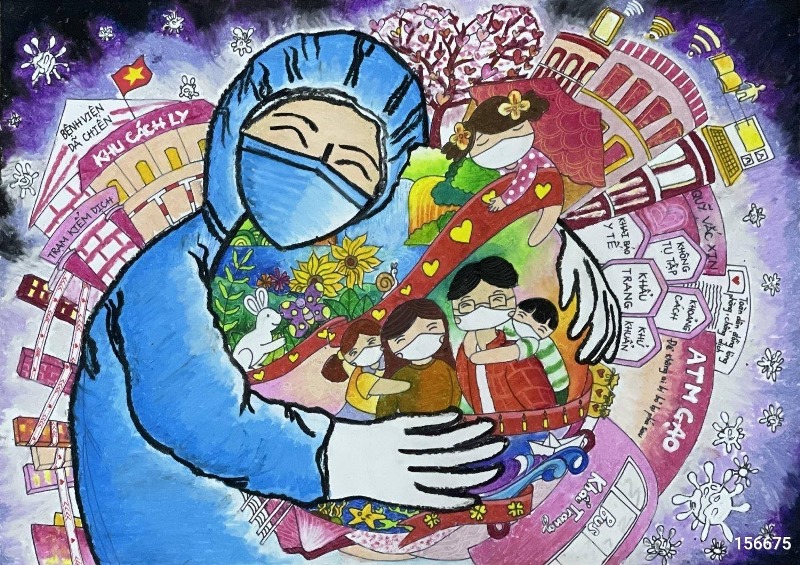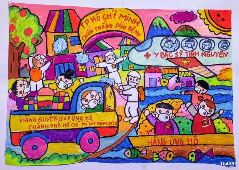 Tranh vẽ của Lee Yun Woo, người Hàn Quốc gửi đến tham gia cuộc thi thể hiện niềm tin tưởng vào các y, bác sĩ sẽ cùng đồng lòng chiến thắng đại dịch Covid-19. Lee Yun Woo cũng như nhiều em học sinh lớp 1 khác, việc diễn đạt bằng tiếng Việt còn nhiều khó khăn, nhưng thông điệp trong tranh của em thì rất dễ hiểu, dễ nhớ. Bằng hình khối và màu sắc, hội họa xóa bỏ ranh giới về tuổi tác, rào cản về ngôn ngữ, giúp mọi người gần gũi, đồng cảm và thấu hiểu nhau hơn.
