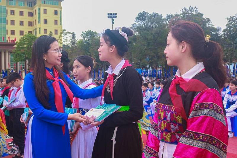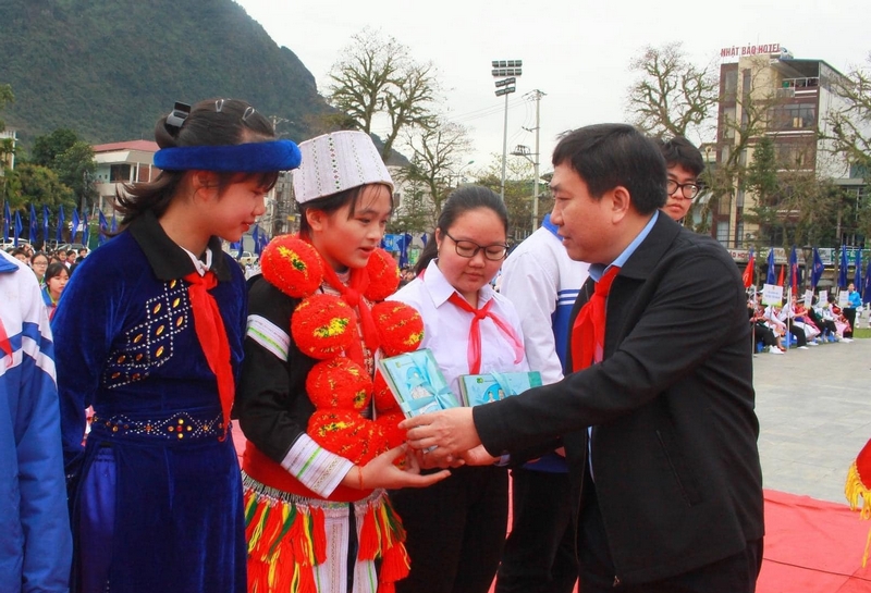Dịp này, T.Ư Đoàn, Hội đồng đội T.Ư đã trao 60 suất học bổng cho 60 thiếu nhi có thành tích xuất sắc, vượt khó vươn lên trên địa bàn tỉnh; trao công trình Không gian đọc sách, tương tác và sinh hoạt Đội trị giá 200 triệu đồng cho Tỉnh đoàn Hà Giang.