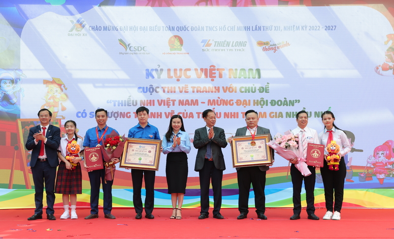Tại chương trình, Tổ chức Kỷ lục Việt Nam (VietKings) chính thức trao quyết định xác lập lỷ lục Việt Nam cho cuộc thi vẽ tranh với chủ đề “Thiếu nhi Việt Nam - Mừng Đại hội Đoàn” có số lượng tranh vẽ của thiếu nhi tham gia nhiều nhất. Đây là món quà đặc biệt của thiếu nhi cả nước chào mừng Đại hội đại biểu toàn quốc lần thứ XII của Đoàn TNCS Hồ Chí Minh, nhiệm kỳ 2022 - 2027.
