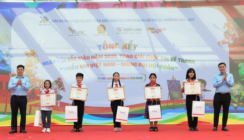 Sáng 28/11, tại trường Tiểu học Thành Công B (Hà Nội), Hội đồng Đội Trung ương và Công ty CP Tập đoàn Thiên Long - Nhãn hàng dụng cụ Mỹ thuật Colokit tổ chức chương trình tổng kết “Ngày hội sắc màu” năm 2022, trao giải cuộc thi vẽ tranh với chủ đề “Thiếu nhi Việt Nam - Mừng Đại hội Đoàn".