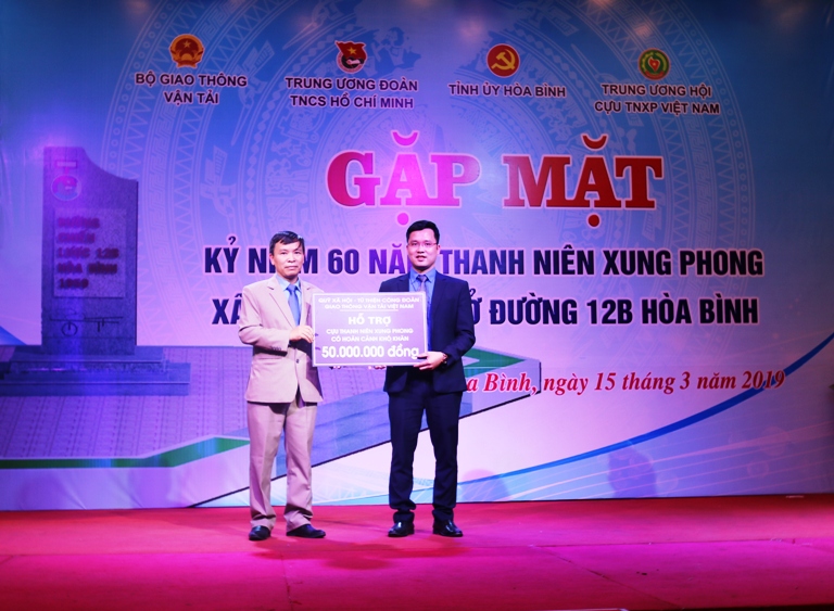 Công đoàn Giao thông Vận tải Việt Nam trực thuộc Bộ Giao thông vận tải hỗ trợ 50 triệu đồng để tổ chức các hoạt động kỷ niệm 60 năm TNXP mởi đường chiến lược 12B Hòa Bình.