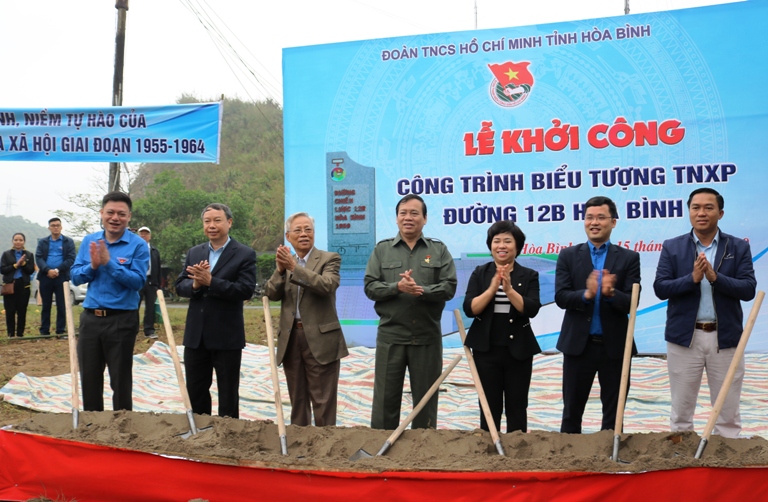 Nằm trong các hoạt động kỷ niệm 60 năm TNXP xây dựng XHCN mở đường chiến lược 12B Hòa Bình, sáng cùng ngày, các cựu thanh niên xung phong đã dự khởi công Công trình biểu tượng Thanh niên xung phong làm đường chiến lược 12B Hòa Bình tại đỉnh Cun, huyện Cao Phong và thăm lại tuyến đường xưa.