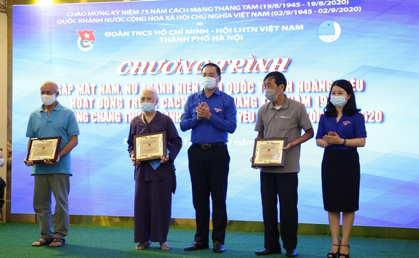 Anh Nguyễn Anh Tuấn, Bí thư thường trực Trung ương Đoàn, Chủ tịch Trung ương Hội LHTN Việt Nam và Ủy viên Ban Thường vụ Thành ủy, Trưởng ban Dân vận Thành ủy Hà Nội Nguyễn Thị Tuyến đại diện các gia đình Đoàn thanh niên cứu quốc thành Hoàng Diệu.