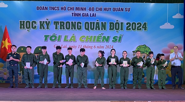 Dịp này, Ban tổ chức đã trao phần thưởng cho các chiến sĩ nhí đạt thành tích tốt trong sinh hoạt và huấn luyện. 120 chiến sĩ nhí cũng được Ban Tổ chức trao giấy chứng nhận hoàn thành Chương trình Học kỳ trong quân đội năm 2024./.