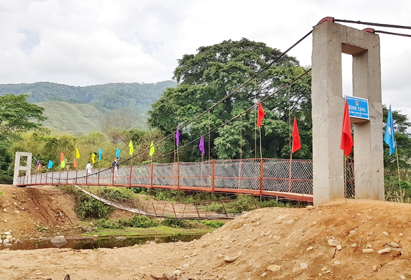 Cây cầu dân sinh ở làng Kon Ktonh tạo điều kiện đi lại thuận lợi cho người dân vùng sâu vùng xa, nơi đi lại khó khăn, nhất vào mùa mưa lũ |