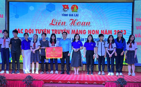 Ban tổ chức trao giải nhất cho Đội tuyên truyền măng non Thành phố Pleiku