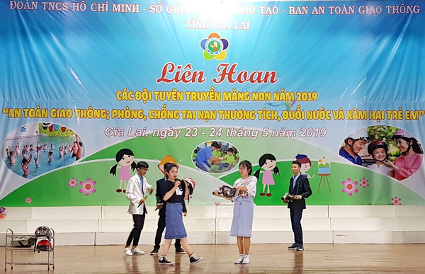 Với chủ đề “ An toàn giao thông, phòng chống tai nạn thương tích, đuối nước và xâm hại trẻ em”, các đội trải qua 2 phần thi: sân khấu hóa tuyên truyền và vẽ tranh tuyên truyền. Phần thi sân khấu hóa tuyên truyền, các đội giới thiệu khái quát về các thành viên trong đội, những hoạt động và thành tích nổi bật về công tác tuyên truyền tại Liên đội theo chủ đề của liên hoan thông qua các hình thức thơ, ca, hò, vè, nhạc, họa… Đồng thời, xây dựng 1 tiểu phẩm tuyên truyền với nội dung về những câu chuyện thật, việc thật; những ý tưởng sáng kiến về an toàn giao thông và phòng, chống tai nạn, thương tích, đuối nước và xâm hại trẻ em…Trong phần thi vẽ tranh, các đội thi vẽ một bức tranh tuyên truyền theo chủ đề liên hoan và hùng biện về ý tưởng, nội dung tranh vẽ.