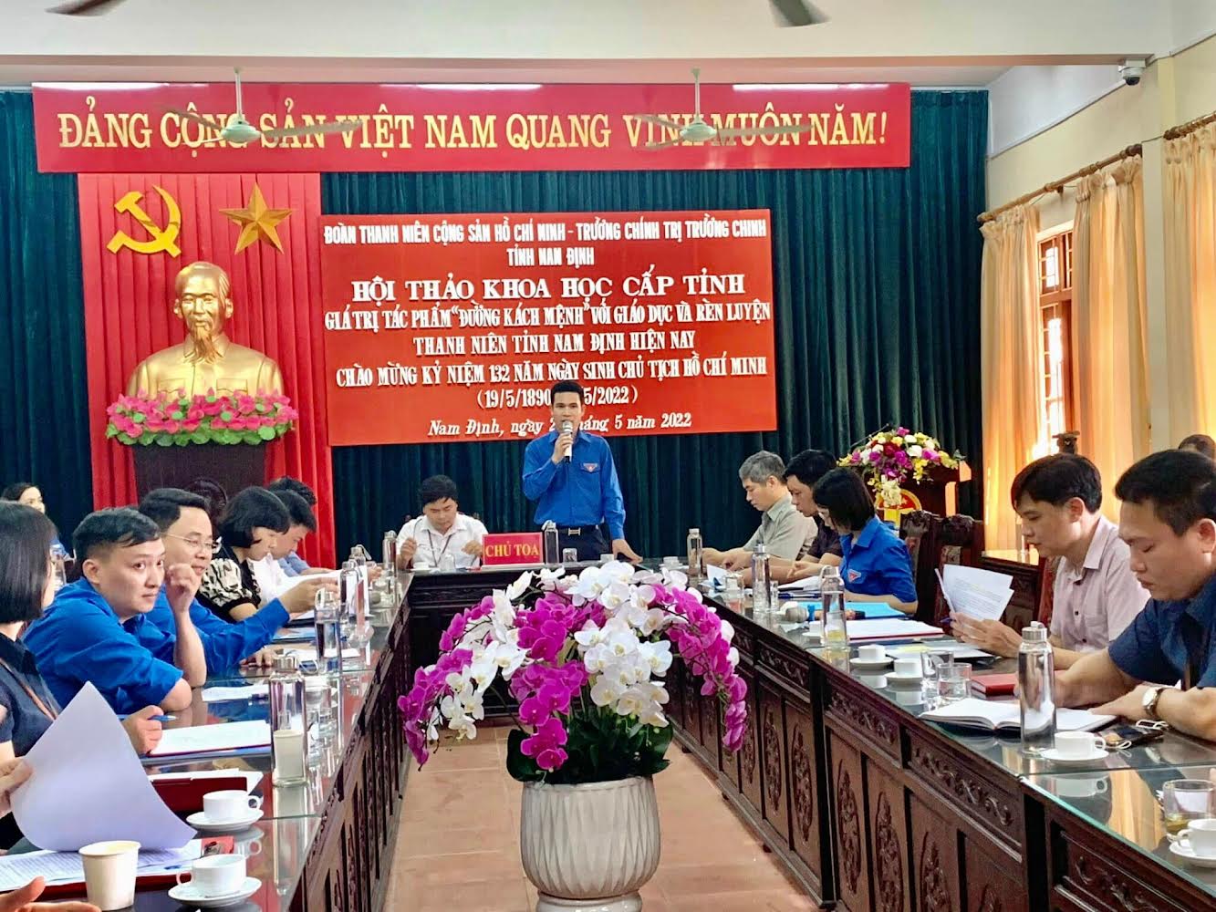 Tại Hội thảo, các đại biểu và ĐVTN đã được xem phóng sự về sự ra đời tác phẩm “Đường Kách mệnh” của Chủ tịch Hồ Chí Minh; cùng tham luận, trao đổi làm rõ các vấn đề: Vai trò của lý luận cách mạng; về công tác xây dựng, chỉnh đốn Đảng qua tác phẩm “Đường Kách mệnh”; Công tác giáo dục lý tưởng cách mạng cho thanh niên tỉnh Nam Định; Công tác vận động thanh niên tỉnh Nam Định và Thanh niên đổi mới, sáng tạo thực hiện chương trình đồng hành với thanh niên nhìn từ thực tiễn công tác Đoàn và phong trào thanh niên tỉnh Nam Định nhằm đưa ra những đề xuất phương hướng và giải pháp nhằm mục tiêu xây dựng đội ngũ thế hệ thanh niên tỉnh Nam Định trong thời kỳ mới.