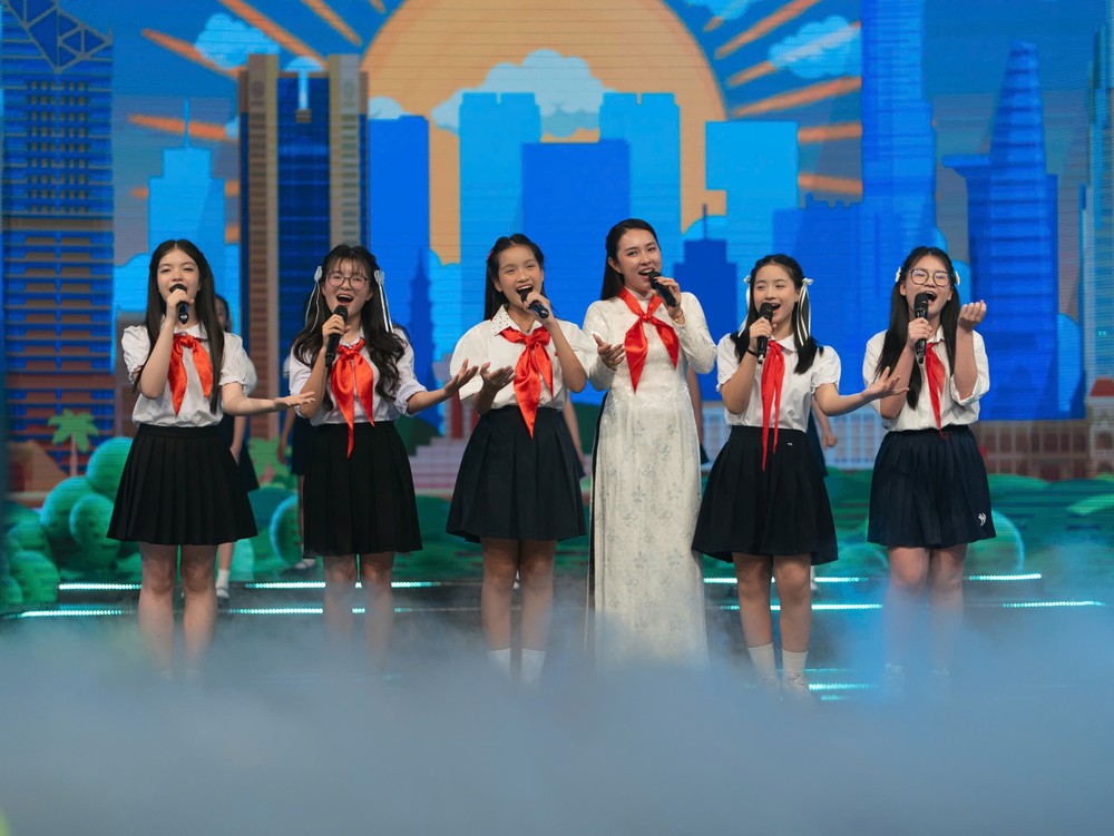 Mở đầu chương trình là chuỗi phóng sự tái hiện không gian thiêng liêng của lễ kết nạp Đội viên, nơi các em được nhận chiếc khăn quàng đỏ - biểu tượng cho lý tưởng cách mạng, sự hy sinh và tình yêu đất nước.