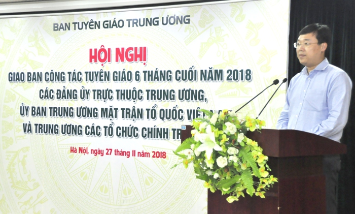 Phát biểu kết luận Hội nghị, đồng chí Lê Mạnh Hùng, Phó Trưởng Ban Tuyên giáo Trung ương đã ghi nhận và biểu dương các Đảng uỷ trực thuộc Trung ương, Uỷ ban Trung ương Mặt trận Tổ quốc Việt Nam và Trung ương các tổ chức chính trị - xã hội trong năm 2018 đã chủ động vượt qua khó khăn, thách thức, tích cực triển khai đồng bộ, toàn diện các lĩnh vực công tác tuyên giáo; đã thực hiện một khối lượng lớn công việc, đạt chất lượng, hiệu quả đáng khích lệ, góp phần hoàn thành kế hoạch năm 2018 đã đề ra.