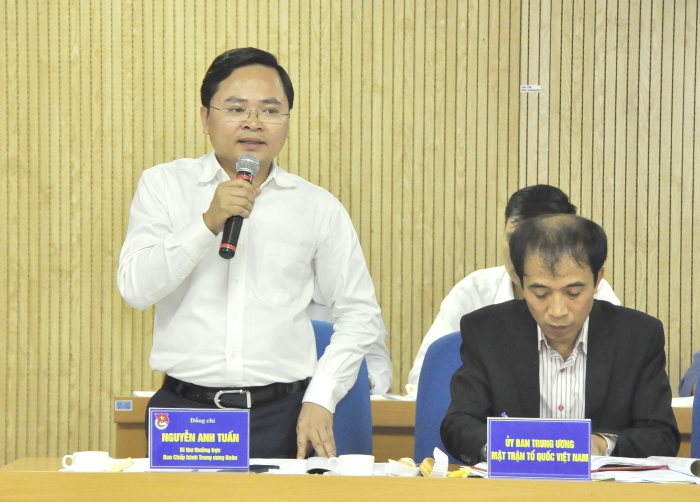 Bí thư Thường trực Trung ương Đoàn Nguyễn Anh Tuấn phát biểu khẳng định những kết quả công tác tuyên giáo của Đoàn thanh niên đã đạt được trong thời gian qua