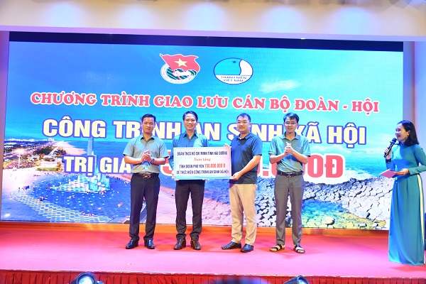 Tỉnh Đoàn Hải Dương trao biểu trao tặng Tỉnh Đoàn Phú Yên 150 triệu đồng để thực hiện công trình an sinh xã hội.