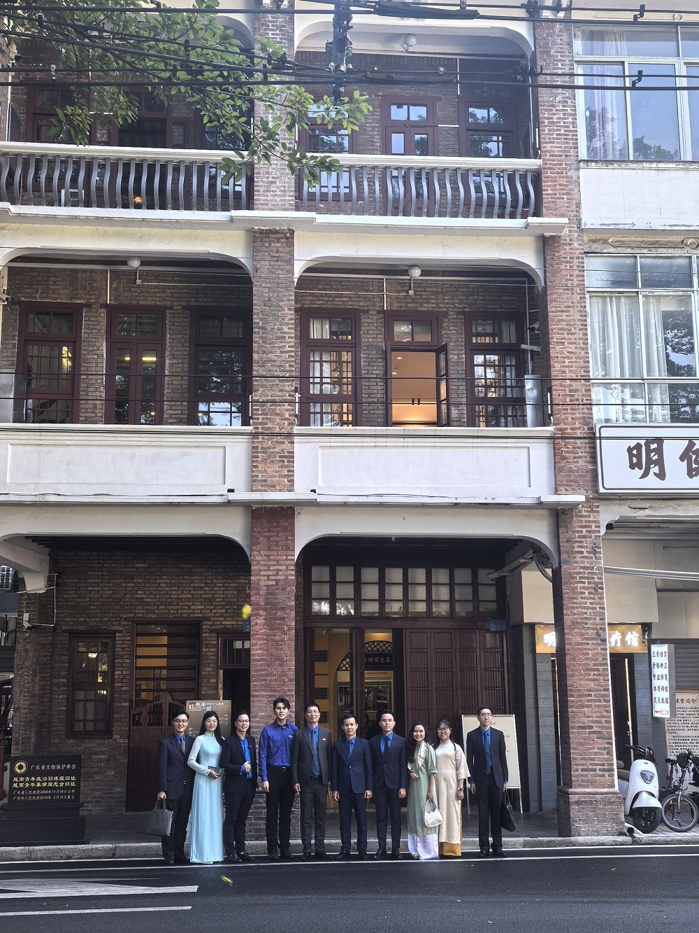 Đoàn chụp ảnh trước khu di tích Hội Việt Nam Cách mạng Thanh niên