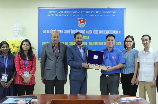 Tỉnh đoàn Quảng Ninh trao quà lưu niệm cho đoàn đại biểu Bộ Thanh niên và Thể thao Ấn Độ
