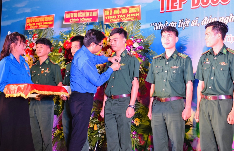Đồng chí Nguyễn Thanh Tùng – Bí thư Tỉnh Đoàn trao kỷ niệm chương cho Thanh niên Bộ đội Biên phòng Tây Ninh