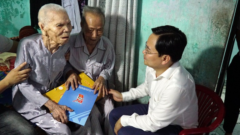 Bí thư thứ nhất Trung ương Đoàn Nguyễn Anh Tuấn đến thăm Mẹ Việt Nam Anh hùng Trần Thị Chanh