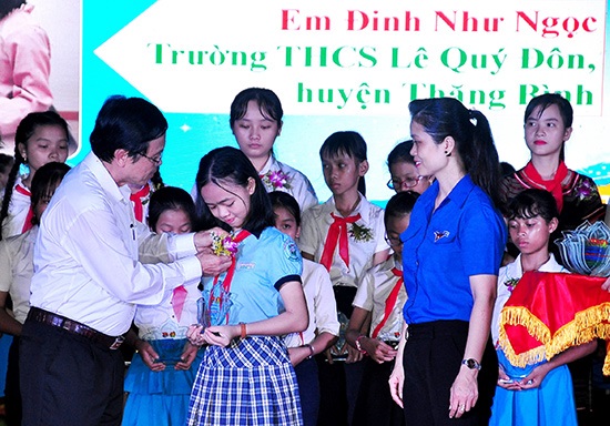 Thêm lần nữa, Nguyễn Thị Ngọc Khuê, lớp 9 Trường THCS Chu Văn An (huyện Duy Xuyên) được xướng tên tại sự kiện dành cho thiếu nhi toàn tỉnh. Năm 2018, Khuê là một trong 38 gương đội viên thiếu nhi tiêu biểu toàn tỉnh được tuyên dương tại Đại hội Cháu ngoan Bác Hồ tỉnh lần thứ V, còn năm nay là gương Liên đội trưởng xuất sắc cấp tỉnh.