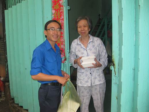 Anh Liên Chí Quang phát cơm miễn phí cho hộ có hoàn cảnh khó khăn (Ảnh nhân vật cung cấp)