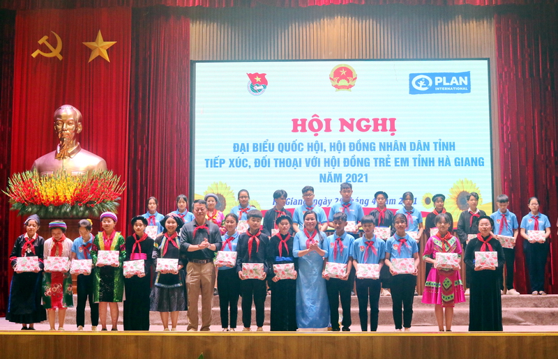 Tham dự và chủ trì Hội nghị có các đồng chí: Hoàng Văn Vịnh - Phó Chủ tịch HĐND tỉnh Hà Giang; Phạm Thị Hồng Yên - Trưởng Ban Kinh tế ngân sách HĐND tỉnh Hà Giang; Chu Thị Ngọc Diệp - Chủ tịch Hội LHPN tỉnh; Bùi Quang Chí - Trưởng Ban Dân tộc HĐND tỉnh; Hùng Thị Giang - Phó Trưởng Ban Văn hóa xã hội HĐND tỉnh; Sền Văn Bắc - Phó Ban Pháp chế HĐND tỉnh; đồng chí Đỗ Thị Hương - Bí thư Tỉnh đoàn; chị Ngô Kim Dung, Điều phối viên Văn phòng Plan Quốc gia cùng đại diện Văn phòng Plan Hà Giang; các đồng chí lãnh đạo 11 Huyện, Thành đoàn - Hội đồng Đội các huyện, thành phố; các đồng chí giáo viên Tổng phụ trách, các thành viên trong Ban tham vấn HĐTE tỉnh và đặc biệt có sự tham dự của 45 em là thành viên Hội đồng trẻ em tỉnh Hà Giang.