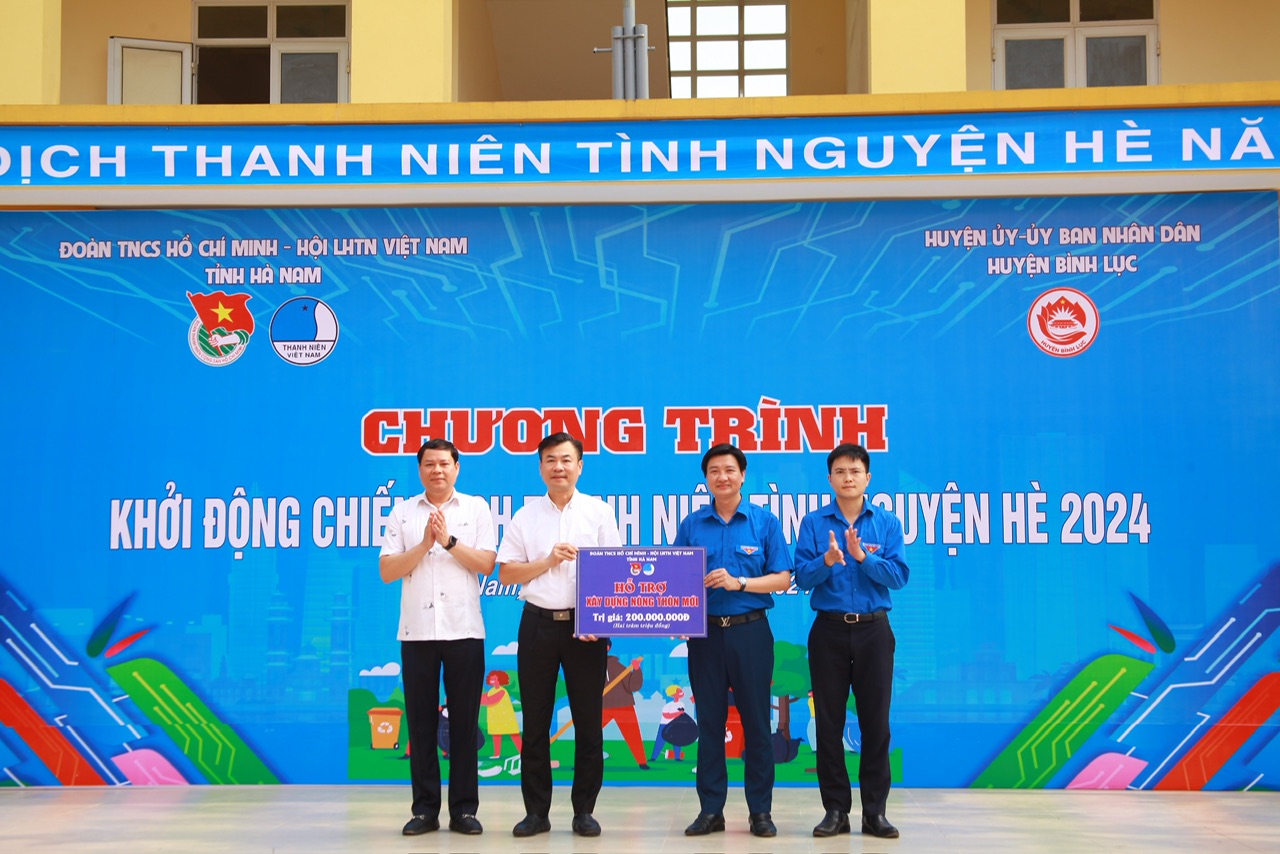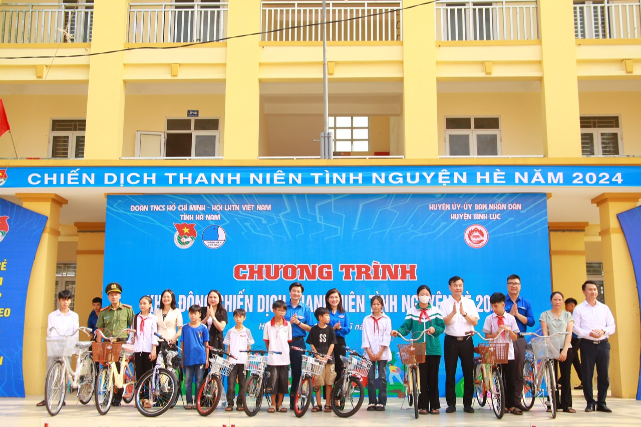 Nhân dịp này, Tỉnh đoàn - Hội LHTN Việt Nam tỉnh trao tặng nguồn lực hỗ trợ xây dựng nông thôn mới cho huyện Bình Lục trị giá 200 triệu đồng; trao tặng Huyện đoàn Bình Lục 2 công trình số hoá di tích lịch sử với tổng trị giá 150 triệu đồng và 150 suất khám, tư vấn, cấp phát thuốc cho nhân dân trên địa bàn xã An Lão trị giá 30 triệu đồng. Bên cạnh đó, tặng 40 suất quà cho các gia đình chính sách có hoàn cảnh khó khăn, các em học sinh có hoàn cảnh khó khăn vươn lên học tập và 10 xe đạp cho học sinh nghèo vượt khó trên địa bàn xã An Lão.