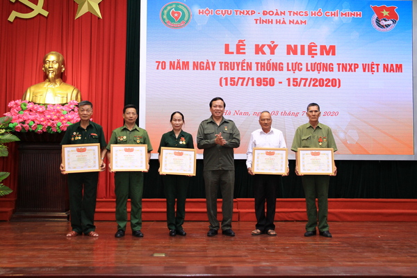 Nhân dịp này, Trung ương Hội cựu TNXP Việt Nam đã trao tặng 10 huy hiệu “Cựu Thanh niên xung phong làm theo lời Bác” cho 10 đồng chí lãnh đạo Đảng, chính quyền, mặt trận, đoàn thể, doanh nhân, doanh nghiệp thuộc tỉnh Hà Nam; trao tặng bằng khen cho 03 tập thể và 05 cá nhân có thành tích đóng góp chung tay, tặng quà, xây dựng nhà tình nghĩa cho các cựu TNXP khó khăn tỉnh Hà Nam; tặng bằng khen cho 05 tập thể và 05 cá nhân có thành tích xuất sắc trong phong trào thi đua chào mừng kỷ niệm 70 năm ngày truyền thống lực lượng TNXP Việt Nam; trao tặng 6 phần quà xây dựng quỹ nghĩa tình đồng đội cho các Hội cựu TNXP các huyện, thị, thành phố trong tỉnh với tổng giá trị quà tặng là 10 triệu đồng; Ủy ban nhân dân tỉnh Hà Nam cũng đã tặng bằng khen cho 05 tập thể và 06 cá nhân vì có nhiều đóng góp cho hoạt động của Hội Cựu TNXP tỉnh; các doanh nghiệp, nhà hảo tâm cũng đã trao tặng 02 nhà tình nghĩa (mỗi nhà trị giá 50 triệu đồng) cho hội viên hội cựu TNXP có hoàn cảnh khó khăn trên địa bàn thành phố Phủ Lý và huyện Lý Nhân; trao quà cho Hội cựu TNXP tỉnh Hà Nam xây dựng quỹ “Nghĩa tình đồng đội” với tổng giá trị trên 34 triệu đồng.
