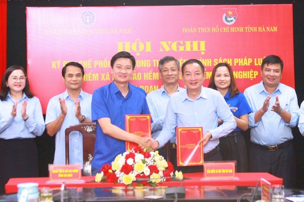 Đại diện lãnh đạo BHXH tỉnh, Tỉnh đoàn Hà Nam ký kết quy chế phối hợp hoạt động giai đoạn 2023 - 2027