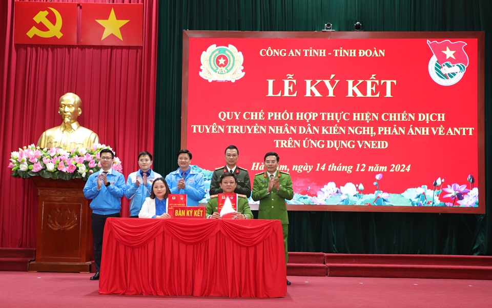 Công an tỉnh - Tỉnh đoàn Hà Nam ký kết Quy chế phối hợp thực hiện chiến dịch tuyên truyền nhân dân kiến nghị, phản ánh về an ninh, trật tự trên ứng dụng VNeID