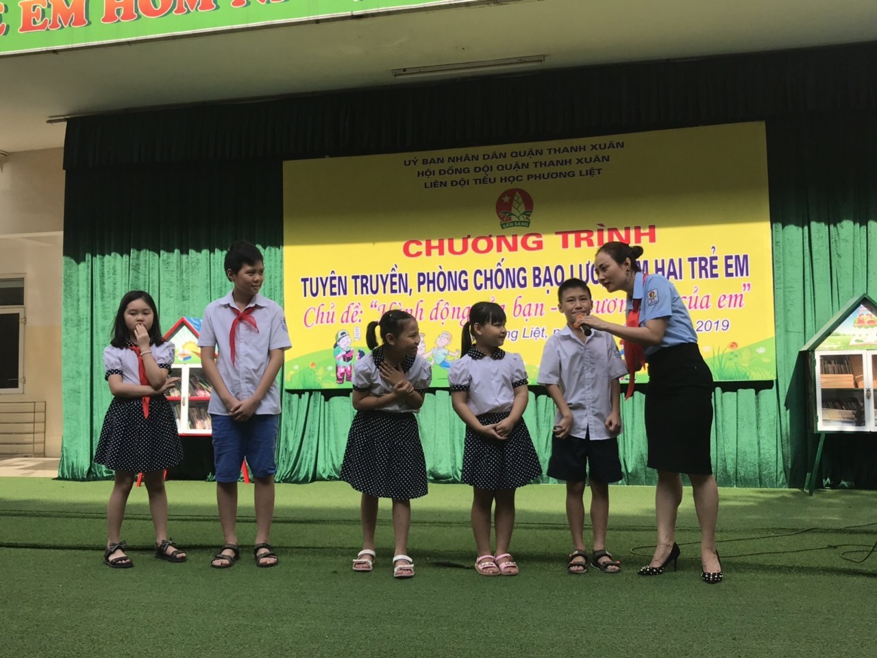 Thành đoàn – Hội đồng Đội TP Hà Nội chỉ đạo Hội đồng Đội các quận, huyện, thị xã hướng dẫn 1.331 Liên đội trên địa bàn đồng loạt tổ chức tuyên truyền phòng chống bạo lực, xâm hại trẻ em với khẩu hiệu: ”Hành động của bạn - Tương lai của em” tại tiết sinh hoạt dưới cờ đầu tuần.