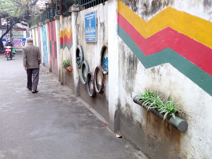 Các bức tường đều được sơn vẽ tỉ mẩn kèm theo dòng chữ tuyên truyền nhằm nâng cao ý thức bảo vệ môi trường.