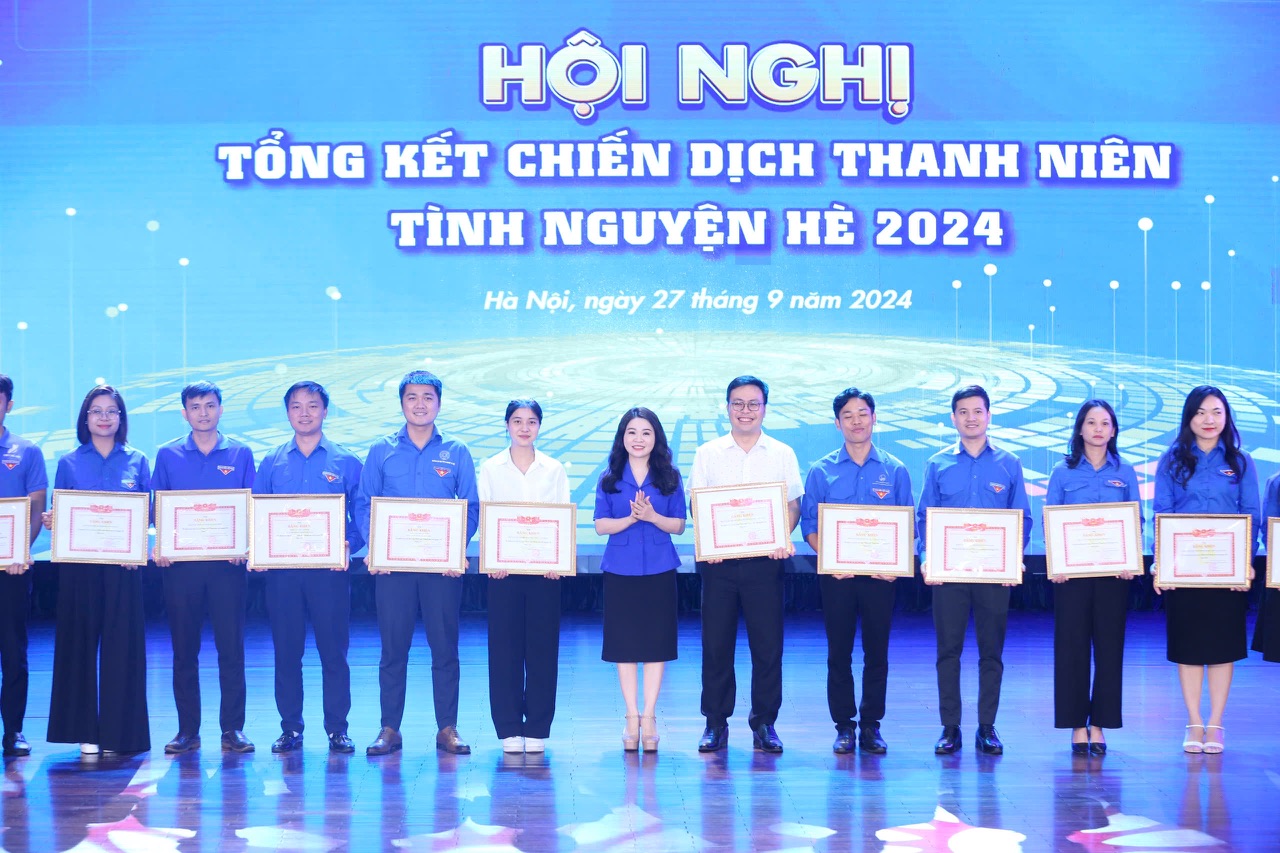 Bí thư Thành đoàn Hà Nội Chu Hồng Minh trao Bằng khen của Trung ương Đoàn TNCS Hồ Chí Minh cho các cá nhân có thành tích xuất sắc trong chiến dịch Thanh niên tình nguyện Hè 2024