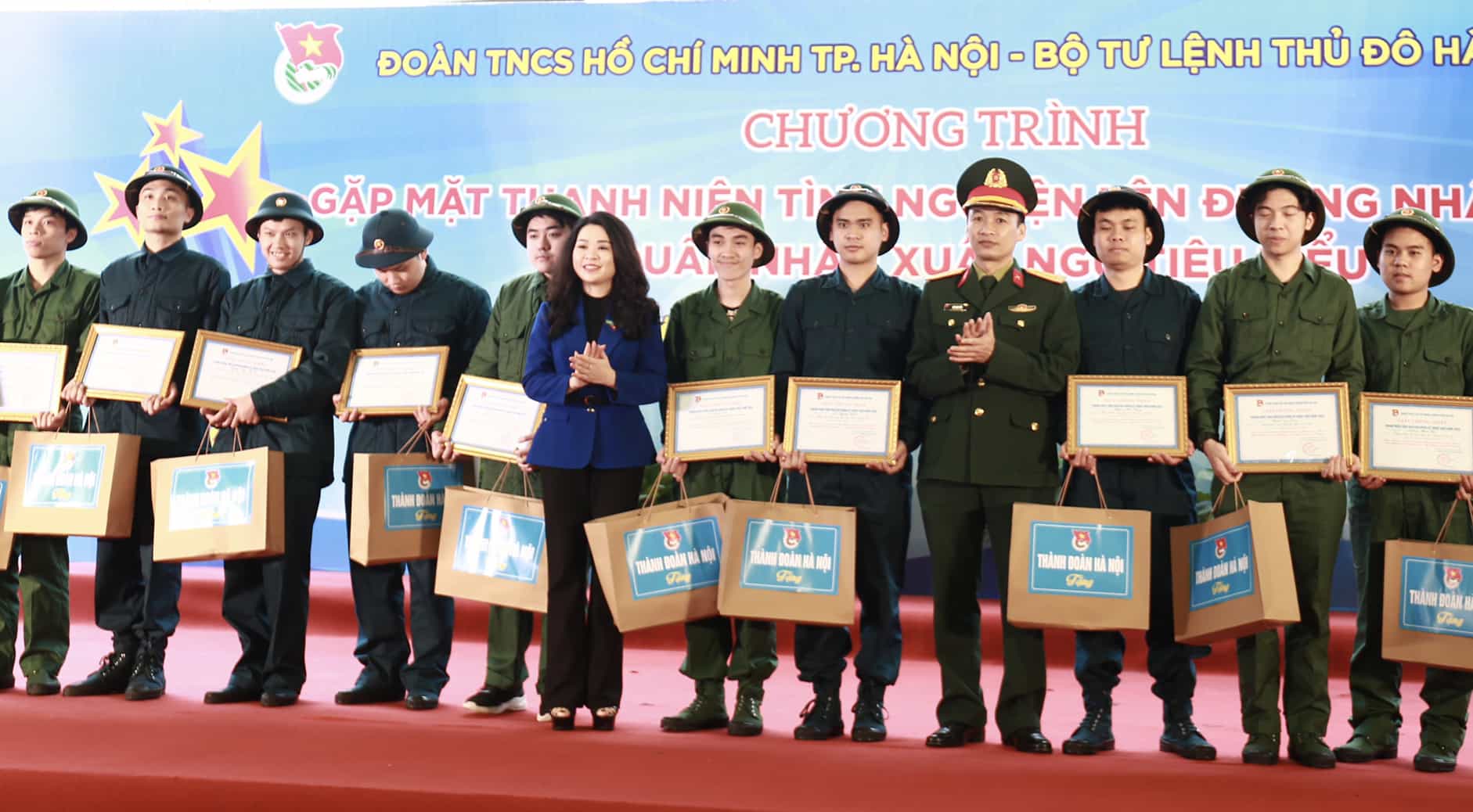 Cũng trong chương trình, nhằm động viên, khích lệ tinh thần các bạn đoàn viên, thanh niên tình nguyện lên đường nhập ngũ năm 2023, Ban Thường vụ Thành đoàn Hà Nội trao tặng giấy chứng nhận và quà tặng cho 76 thanh niên tình nguyện lên đường nhập ngũ bảo vệ Tổ quốc; tặng Bằng khen và quà cho 5 quân nhân xuất ngũ tiêu biểu và 5 chiến sĩ tham gia nghĩa vụ Công an nhân dân tiêu biểu.