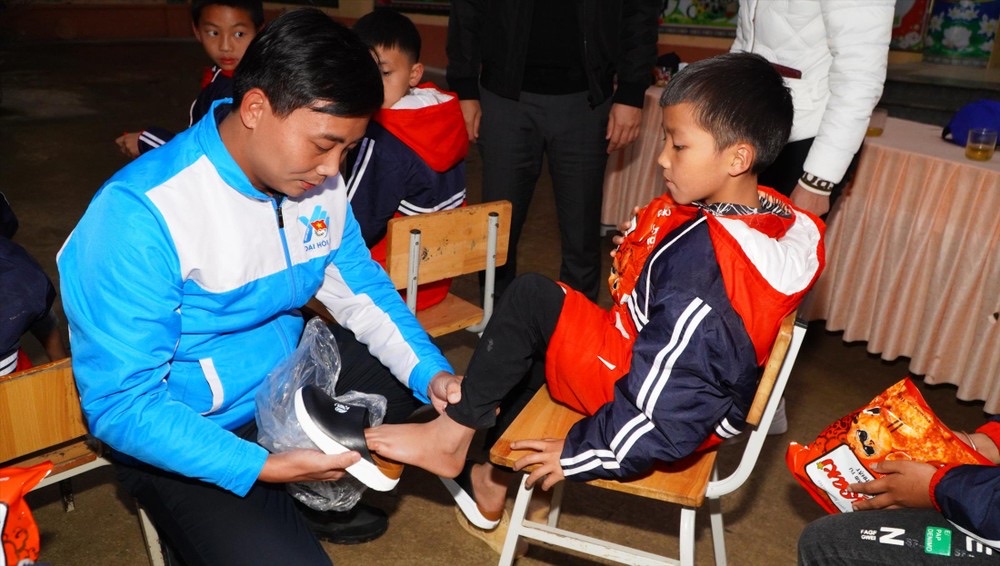 Ngày hội Thanh niên Thủ đô sẽ thực hiện loạt công trình, phần việc thanh niên ý nghĩa (Trong ảnh: Đồng chí Nguyễn Đức Tiến - Phó Bí thư thường trực Thành Đoàn, Chủ tịch Hội LHTN TP Hà Nội tặng quà “Đông ấm cho em” tại Si Ma Cai, Lào Cai)