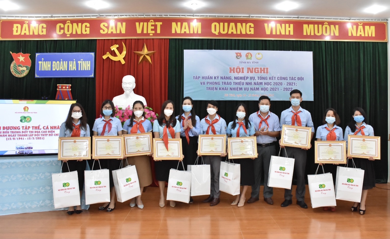 Cũng tại Hội nghị, Hội đồng Đội tỉnh đã thông qua danh sách 13 tập thể đã có thành tích xuất sắc được Trung ương Đoàn, Hội đồng Đội Trung ương, Uỷ ban Nhân dân tỉnh tặng bằng khen; 12 công trình măng non tiêu biểu cấp Tỉnh trong phong trào thi đua chào mừng Kỷ niệm 80 thành lập Đội TNTP Hồ Chí Minh; trao giải thưởng “Cánh én Hồng” năm 2021; vinh danh 10 giáo viên làm Tổng phụ trách Đội tiêu biểu, 13 Chỉ huy Đội, đội viên, thiếu nhi tiêu biểu trong toàn tỉnh.