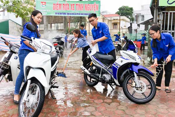 Đoàn Thanh niên phường Trần Phú, Thành đoàn Hà Tĩnh đã ra quân rửa xe miễn phí gây quỹ tiếp sức đến trường