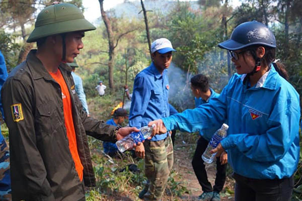 Bên cạnh các lực lượng chức năng, tất cả đoàn viên thanh niên trên địa bàn đã chủ động trực tiếp tham gia chữa cháy, di dời tài sản cho nhân dân, nhóm còn lại tham gia hỗ trợ tiếp tế nước uống, thức ăn lên rừng cho các lực lượng.