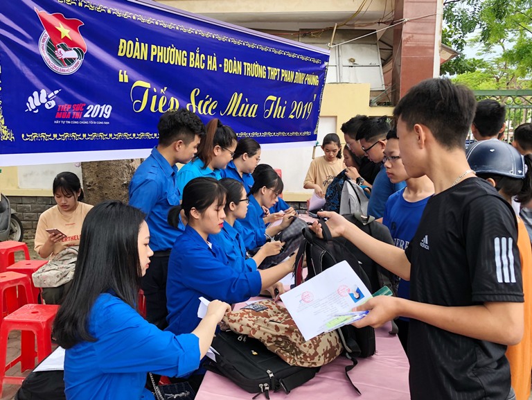 Các đội thanh niên tình nguyện nhận giữ đồ cho thí sinh