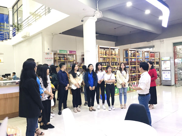 Cuối chương trình, các bạn sinh viên đã được tham quan tìm hiểu về Công ty Cổ phần Ced Central Hà Tĩnh - Trung tâm trưng bày, giới thiệu, tiêu thụ sản phẩm OCOP và hàng hóa sản xuất trong tỉnh, kết hợp không gian làm việc chung cho doanh nghiệp. Đây là mô hình độc đáo mới lạ có ý nghĩa kết nối các doanh nghiệp, cơ sở sản xuất theo từng lĩnh vực và thành chuỗi tăng khả năng tiêu thụ và sức cạnh tranh của sản phẩm sản xuất tại Hà Tĩnh.
