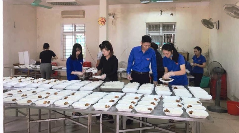 TNTN huyện Hương Sơn hỗ trợ, chuẩn bị bữa ăn miễn phí cho sinh viên Lào tại Khu cách ly phòng chống dịch bệnh covid-19 tại khu vực Cửa khẩu Cầu Treo