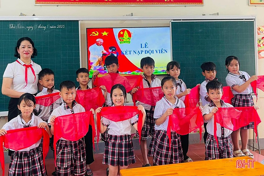 Liên đội Trường Tiểu học Mai Phụ, huyện Thạch Hà tổ chức lễ kết nạp đội viên.