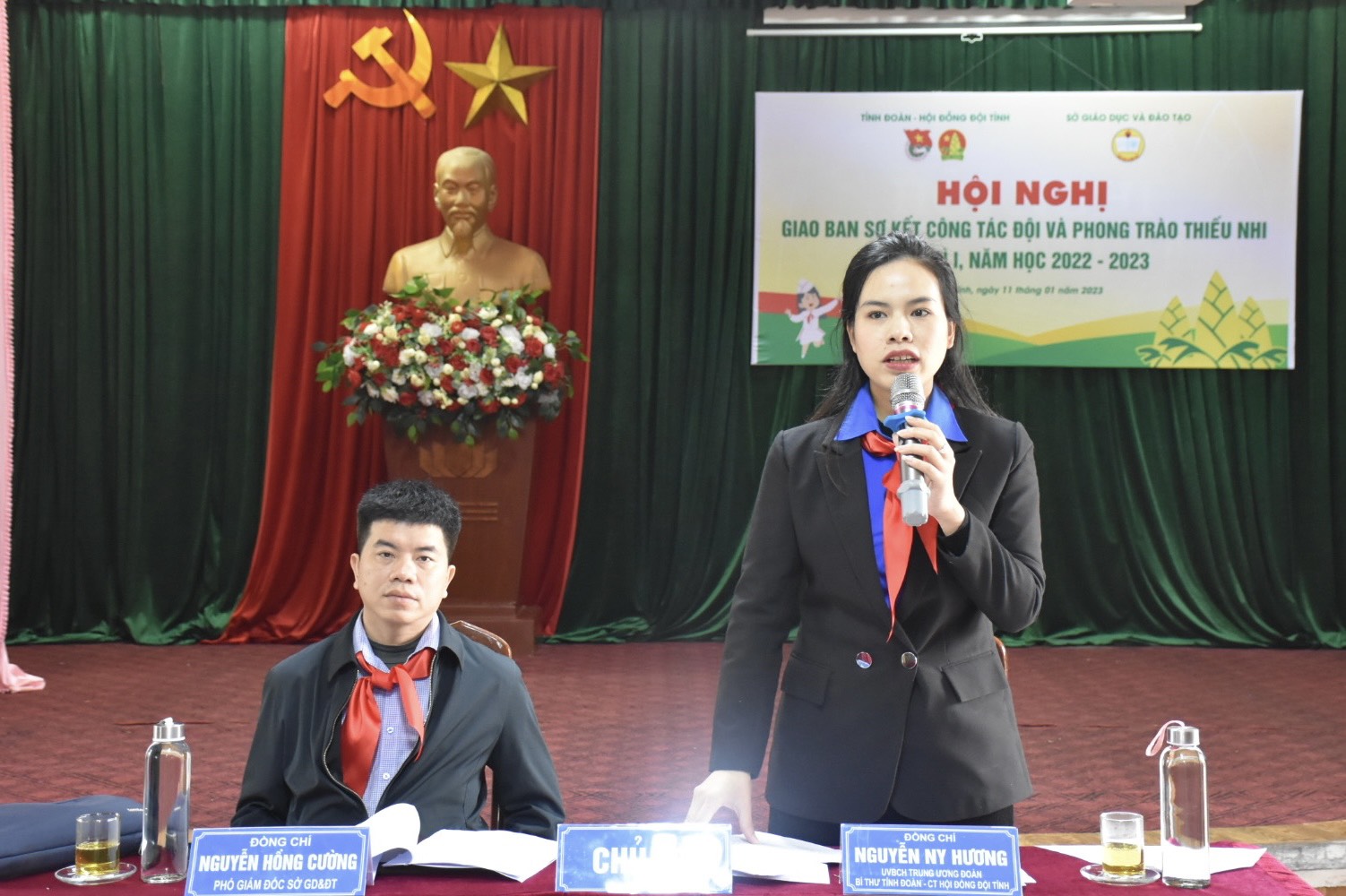 Phát biểu kết luận Hội nghị, đồng chí Nguyễn Ny Hương - UVBCH Trung ương Đoàn, Bí thư Tỉnh đoàn, Chủ tịch Hội đồng Đội tỉnh và thầy giáo Nguyễn Hồng Cường - Phó Giám đốc Sở Giáo dục - Đào tạo biểu dương những kết quả mà các cơ sở Đội đã đạt được trong năm qua, chỉ ra một số tồn tại hạn chế cần khắc phục, đồng thời đề nghị các cấp bộ Đội tiếp tục triển khai tốt các nhiệm vụ trọng tâm trong thời gian tới. Đặc biệt chú trọng đến giáo dục truyền thống văn hóa, tuyên truyền về bạo lực học đường, pháp luật an toàn giao thông, phòng chống cháy nổ cho thanh thiếu nhi, chọn lọc và tham gia hiệu quả các cuộc thi trực tuyến, đặc biệt là cuộc thi tiếng anh "Em yêu Hà Tĩnh", đẩy mạnh sự phối hợp giữa Sở Giáo dục - Đào tạo với Tỉnh đoàn để triển khai hiệu quả các chương trình, tạo điều kiện cho các cấp bộ Đội trong nhà trường hoạt động có trọng tâm, trọng điểm.