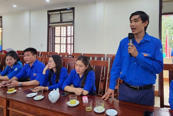 Đồng chí Nguyễn Tuấn Anh, Ủy viên BCH Tỉnh đoàn, Bí thư Huyện đoàn, Chủ tịch Hội Liên hiệp Thanh niên Việt Nam huyện Đức Thọ đặt vấn đề, trao đổi tại buổi sinh hoạt