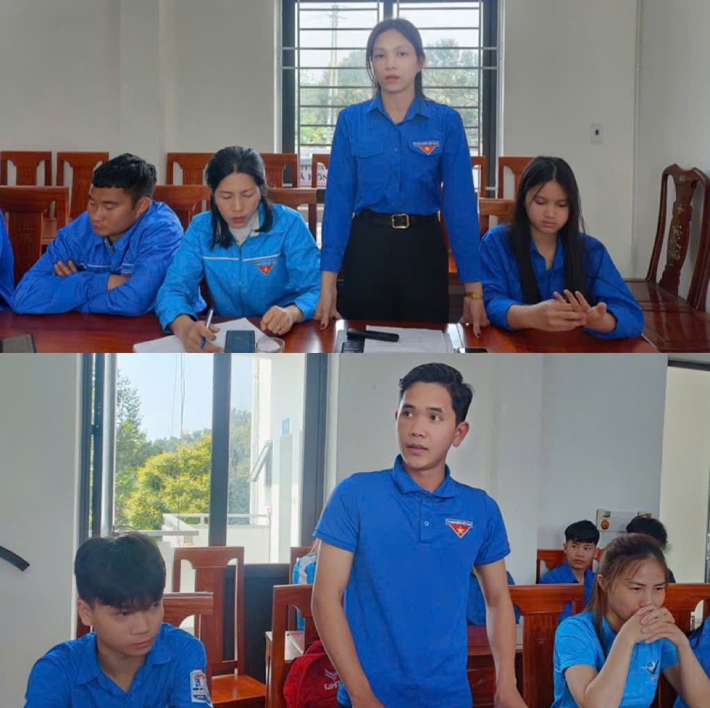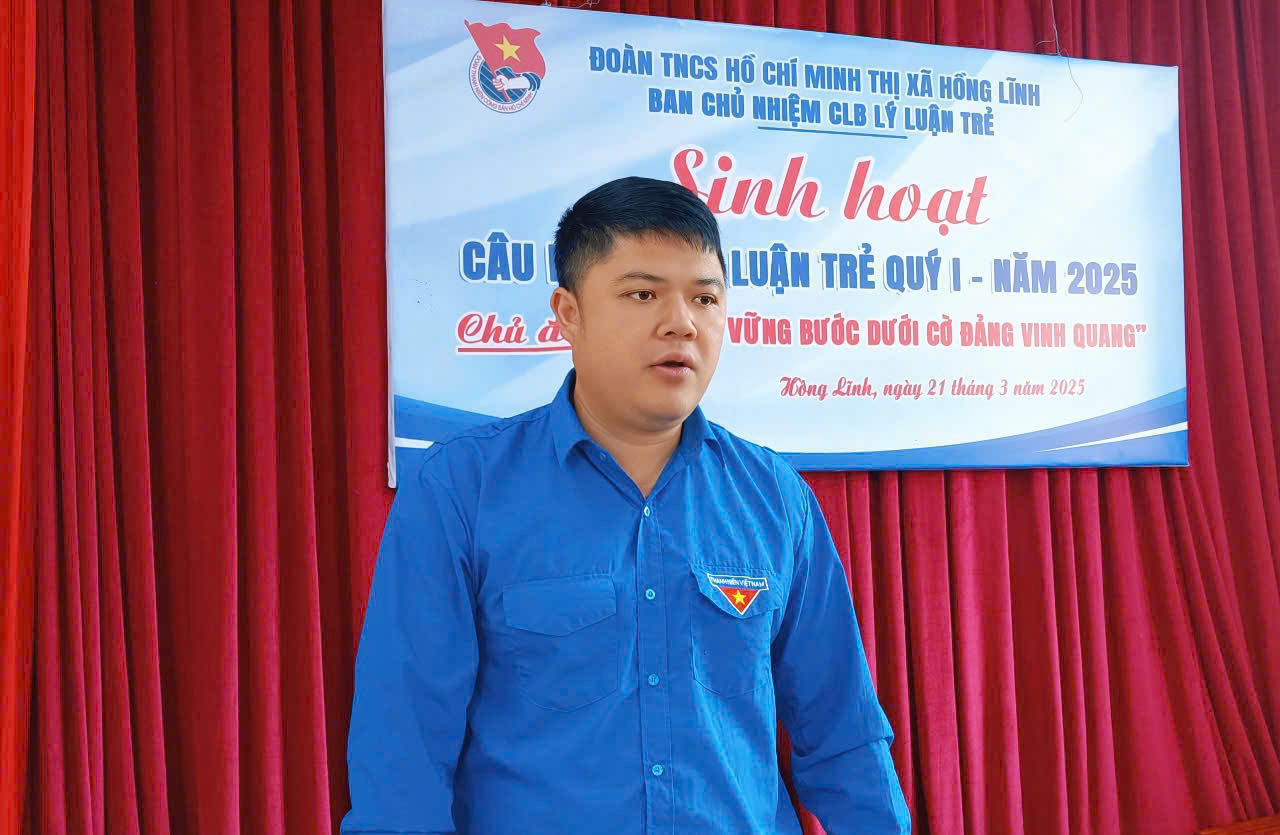 Đồng chí Hoàng Quốc Việt, Bí thư Thị đoàn, Chủ nhiệm CLB Lý luận Trẻ thị xã nêu lên ý nghĩa của buổi sinh hoạt