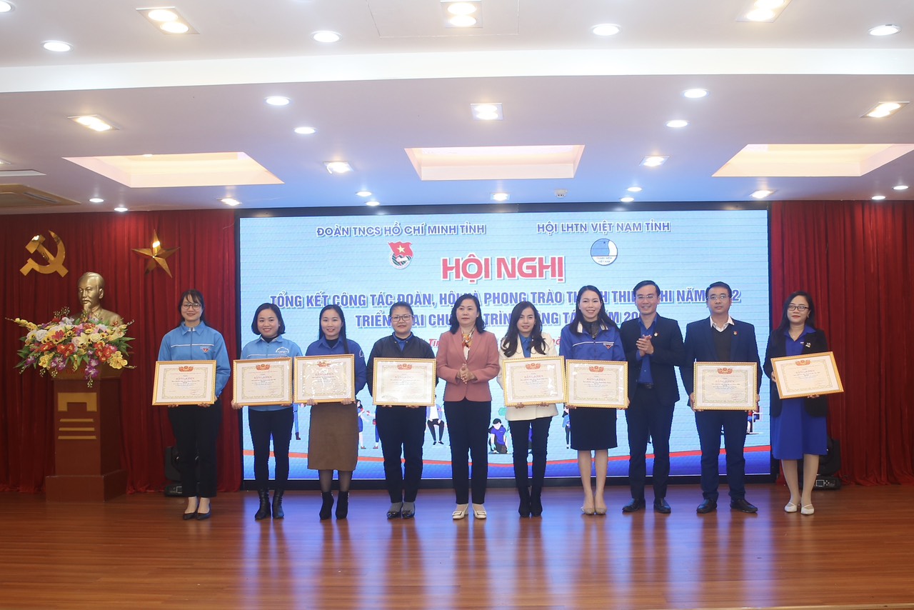 Hội nghị cũng đã trao cờ thi đua xuất sắc của Trung ương Đoàn cho 2 đơn vị, trao bằng khen của BCH Trung ương Đoàn cho 7 tập thể; trao bằng khen của Trung ương Hội Liên hiệp Thanh niên Việt Nam cho 8 tập thể có thành tích dẫn đầu; tặng cờ thi đua xuất sắc của Tỉnh đoàn cho 11 tập thể; trao bằng khen của Tỉnh đoàn cho 6 tập thể; trao cờ thi đua xuất sắc của Hội LHTN Việt Nam tỉnh cho 8 tập thể, bằng khen của Ủy ban Hội LHTN tỉnh cho 6 tập thể có thành tích xuất sắc.