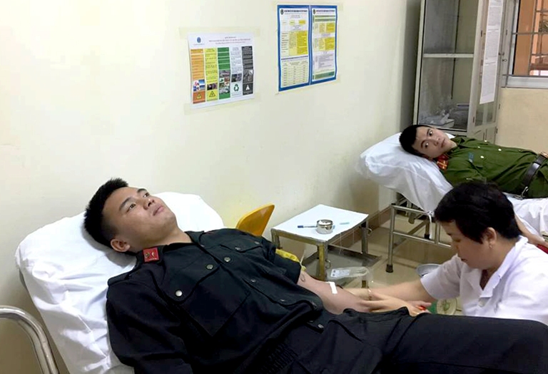 Ngay lập tức, các tình nguyện viên Trần Văn Nam, Nguyễn Hữu Thọ (CLB Ngân hàng máu sống Công an tỉnh), Bùi Văn Nam ( CLB Ngân hàng máu sống huyện Thạch Hà) và một tình nguyện viên đến từ huyện Cẩm Xuyên có nhóm máu AB, cùng nhóm máu với bệnh nhân đã có mặt trực tiếp để hiến 4 đơn vị máu, giúp bệnh nhân ổn định sức khoẻ tiếp tục chữa trị.