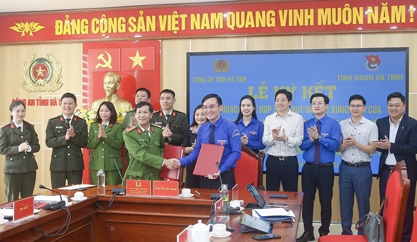 Cuối tháng 2 vừa qua, Công an tỉnh và Tỉnh đoàn, Hội LHTN Việt Nam tỉnh Hà Tĩnh đã ký kết kế hoạch phối hợp về phát huy vai trò xung kích của Đoàn Thanh niên, Hội LHTN Việt Nam các cấp trong triển khai Cuộc vận động tuyên truyền, hướng dẫn người dân cài đặt tài khoản định danh điện tử trên địa bàn tỉnh. Cùng với đó, 13/13 huyện, thị, thành Đoàn cũng tổ chức ký kết kế hoạch phối hợp với công an cùng cấp hưởng ứng cuộc vận động.