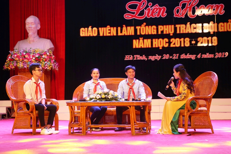 Trong chương trình liên hoan, các đại biểu tham gia cũng đã xúc động với phần giao lưu chia sẻ những kỷ niệm sâu sắc, kinh nghiệm quý giá trong quá trình làm Tổng phụ trách Đội của các giáo viên tiêu biểu: đồng chí Lê Văn Tùng - Giáo viên, Tổng phụ trách Đội trường THCS Cẩm Trung, huyện Cẩm Xuyên - từng đạt danh hiệu “Cánh én hồng” do Hội đồng Đội Trung ương trao tặng, Huấn luyện viên cấp I trung ương; từng dạy bơi miễn phí cho gần 5.000 thanh thiếu nhi; đồng chí Phan Thị Thuỳ Diễm - Giáo viên, Tổng phụ trách Đội trường THCS Thành Mỹ, huyện Nghi Xuân – từng đoạt giải nhất Liên hoan cấp huyện, giải nhất giáo viên dạy giỏi cấp tỉnh, nghệ nhân trẻ đã tiếp lửa, truyền dạy cho hàng trăm em thiếu nhi các làn điệu Dân ca ví giặm Nghệ Tĩnh; cùng tham gia có em Phạm Quang Linh - Chỉ huy Đội Trường THCS Lê Văn Thiêm, huyện Đức Thọ, Top 30 Chỉ huy Đội giỏi xuất sắc toàn quốc năm 2018. Những câu chuyện được chia sẽ trong chương trình toạ đàm đã mang lại nhiều cảm xúc sâu sắc đối với toàn thể đại biểu có mặt tại hội trường.