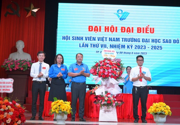 Đại diện cho Ban Thư ký Hội Sinh viên Việt Nam tỉnh, đồng chí Hoàng Trọng Hiển, Phó Chủ tịch Hội Sinh viên Việt Nam tỉnh đã ghi nhận những cố gắng, nỗ lực của Hội Sinh viên Việt Nam trường Đại học Sao Đỏ trong nhiệm kỳ vừa qua, nhấn mạnh các nhiệm vụ trọng tâm trong nhiệm kỳ mới, đặc biệt nhấn mạnh công tác nắm bắt dư luận trong sinh viên, hỗ trợ sinh viên khởi nghiệp, lập nghiệp sau khi ra trường, phong trào “Sinh viên 5 tốt”, phong trào sáng tạo trong sinh viên.