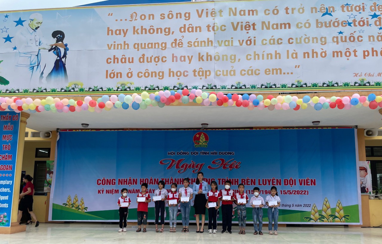 Nhân dịp này, Hội đồng Đội tỉnh đã trao 20 suất quà cho 20 đội viên có hoàn cảnh khó khăn vươn lên trong học tập và tích cực trong công tác Đội của 02 Liên đội trường Tiểu học Văn Tố và trường Tiểu học Thị trấn Gia Lộc, tổng trị giá 10.000.000 đồng.